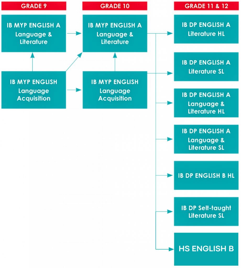 IB MYP English A Language & Literature exposes students to a range of texts (literary and non-literary) of increasing complexity and sophistication. It strives to support reading for pleasure and purpose and to equip students with the skills to communicate effectively in various genres. IB MYP English A Language & Literature prepares students for the IB DP Language A HL/SL and HS English programs in Grades 11 and 12.